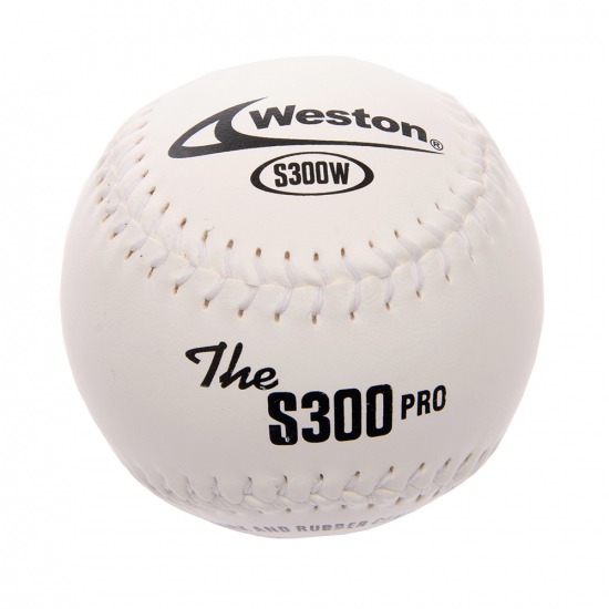 Pelota de softball S300W de alta calidad, ideal para entrenamientos y juegos recreativos. Color blanco clásico y durabilidad confiable.